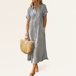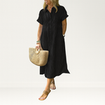 Élégante, aérienne et incroyablement confortable, la robe maxi Colette™ est votre alliée pour un look féminin et raffiné sans effort. Son tissu doux et respirant en mélange de coton épouse délicatement les formes tout en conservant sa tenue toute la journée. Son col chic, ses manches courtes et sa patte de boutonnage centrale ajoutent une touche soignée à cette pièce estivale indispensable. Sa coupe subtilement cintrée et sa jupe fluide créent une silhouette flatteuse qui vous accompagnera en toute occasion.