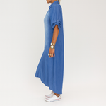 Légère, confortable et ultra-polyvalente, la robe longue Yvette™ au look denim est votre alliée du quotidien. Confectionnée dans un denim doux et respirant à l’aspect légèrement délavé, elle allie style décontracté et confort absolu. Sa coupe fluide, ses manches courtes retroussées et sa fente latérale apportent liberté de mouvement et touche féminine. Portez-la avec des baskets pour un look casual ou avec des bottines pour un style plus affirmé.